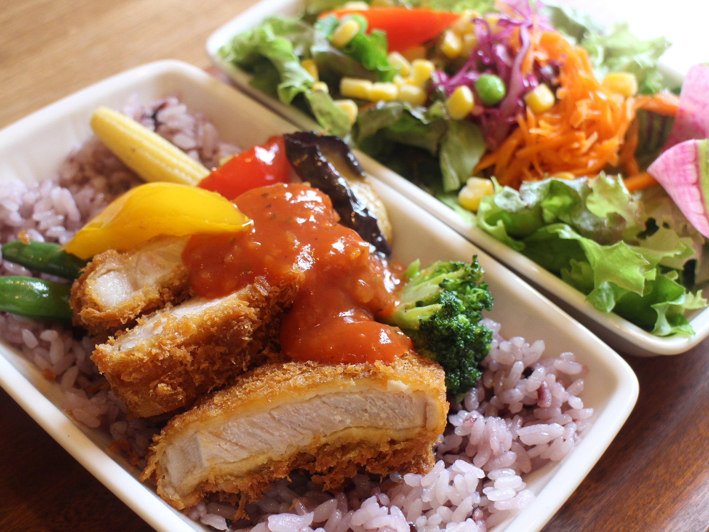 一つ一つご注文頂いてからお作りしているので、温かいままお召し上がり頂けます。フランス料理出身のシェフならではの独自のお弁当は、野菜や雑穀米を使用するなどただ美味しいだけでなく、「食べて体に優しい」を大事にしています。