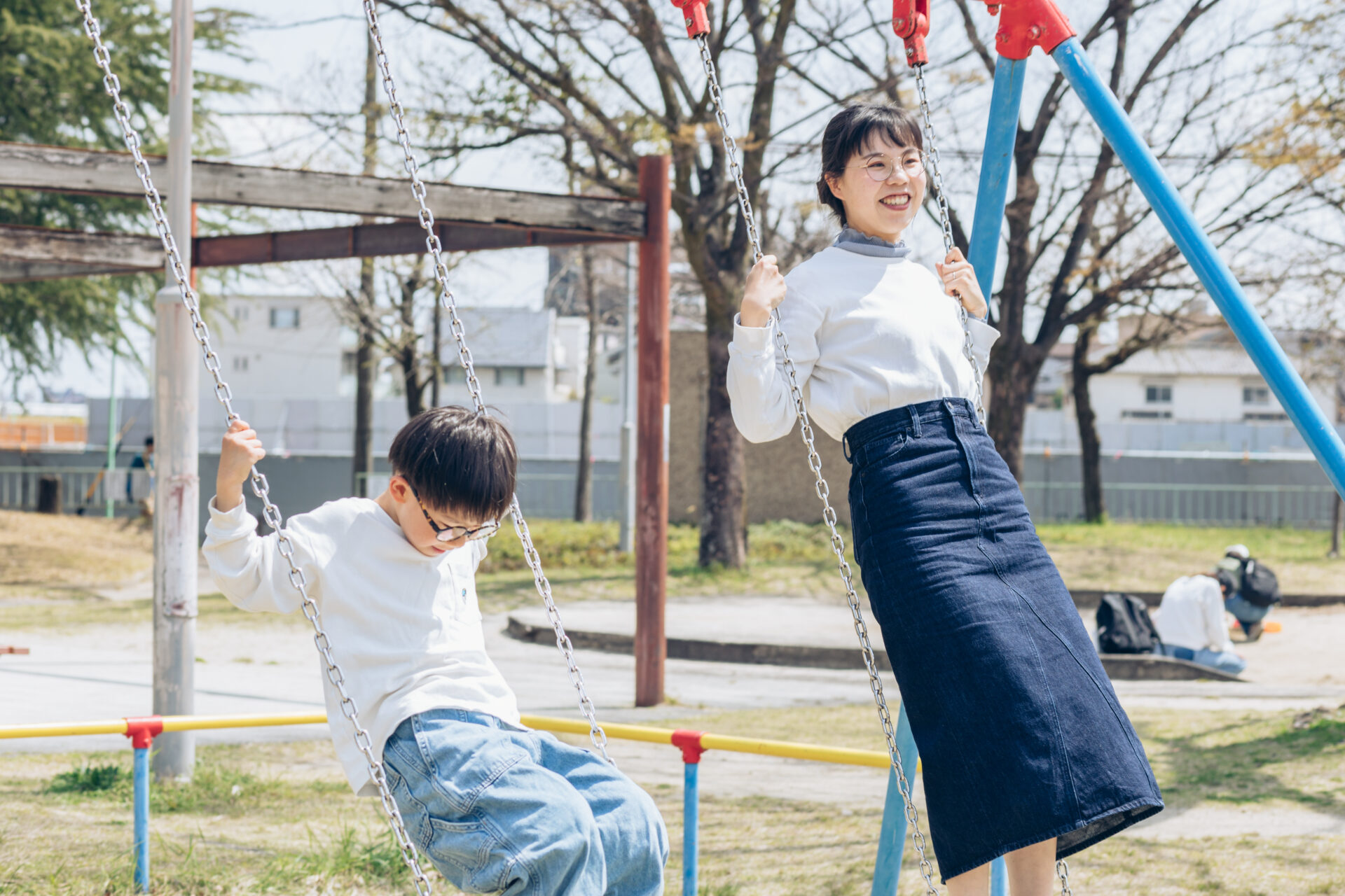 ママさんも一緒にブランコしてくれるの結構好き。