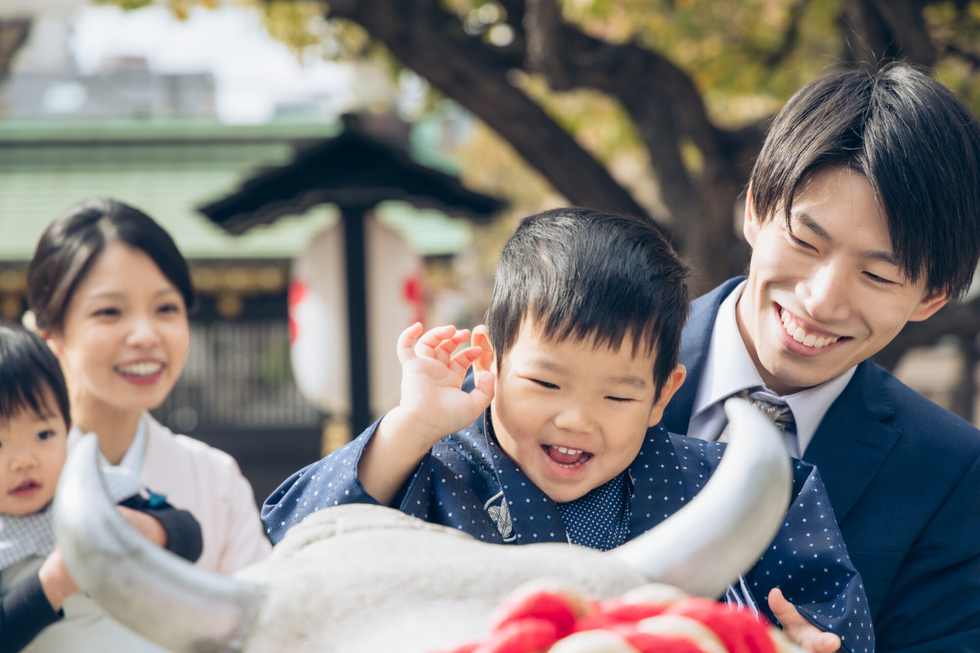 以前、写真館でお宮参りの撮影をしたことがあったのですが、いざカメラを向けられると子どもも大人も顔がひきつってしまい、いつもはもっと良い表情をする息子の表情が固く残念な思いをすることがありました。なので自然体の姿を写真に収めることをモットーにしている荒嶋さんの撮影スタイルにとても惹かれ今回お願いすることにしました。