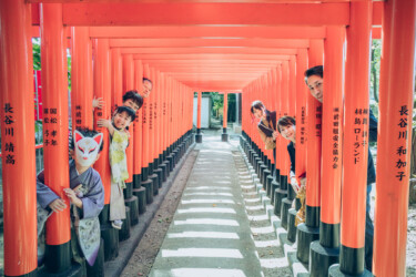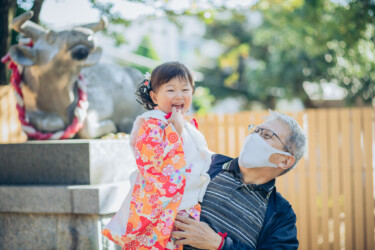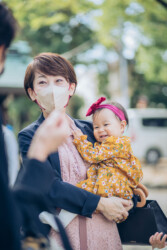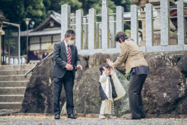 みんなで並んだ集合写真以外にも、神社に参拝に来た家族の自然な様子をたくさん撮ってほしい。という方に「撮影」ではなく、昔遠足や修学旅行で同行してくれていた写真館のおじさんのような感じ。